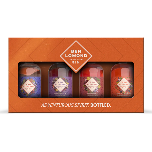 Featuring 4x5cl bottles, this set includes our bold and versatile classic London Dry, alongside three vibrant flavour expressions which capture the essence of the wild and refreshing Scottish seasons: Blackberry & Gooseberry, Raspberry & Elderflower, and Blood Orange & Pink Grapefruit.
